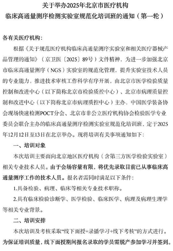 上一篇: 关于举办第一期北京市医疗机构临床高通量测…