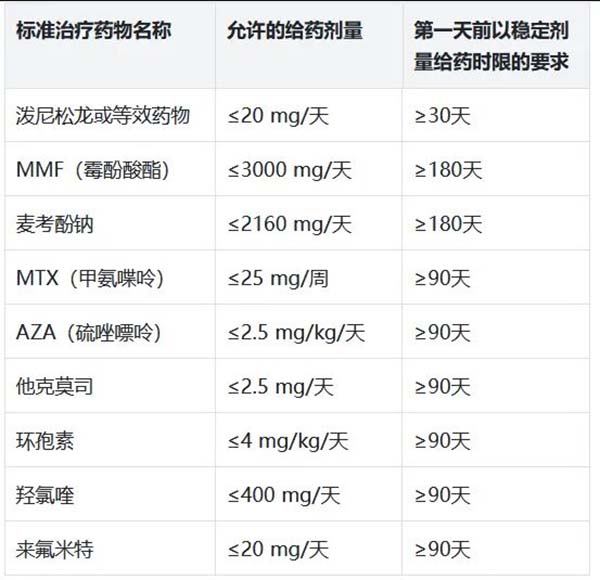 目前须接受稳定剂量的标准治疗来控制 ILD 和/或基础CTD,或一线标准治疗失败或不耐受。以下单药或联合皆可(下图):