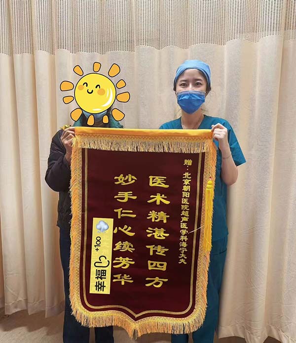 患者为超声医学科副主任医师海宁送上锦旗并合影