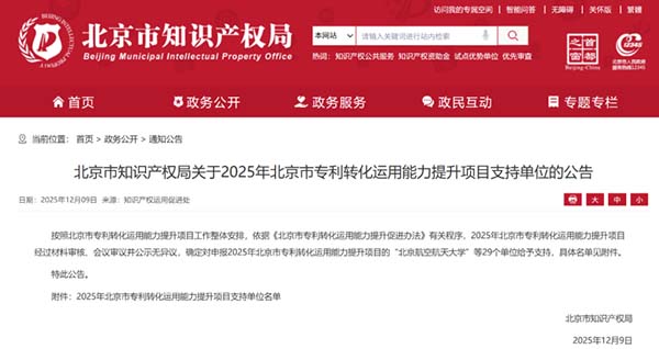 北京市专利转化运用能力提升项目由北京市知识产权局于 2024 年依据《北京市专利转化运用能力提升促进办法》设立,以能力建设为基础、以综合成效为导向,支持对象涵盖北京市高等学校、科研机构、医疗卫生机构及开展专利转化运用相关业务的服务机构。2025 年度该项目共支持 25 家高校院所,其中市属医院 4 家。